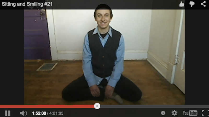 An experimental artist named Ben Bennett has begun posting videos to his YouTube channel that are livestreams of him sitting and smiling for four-hour intervals. Here is today's video stream: